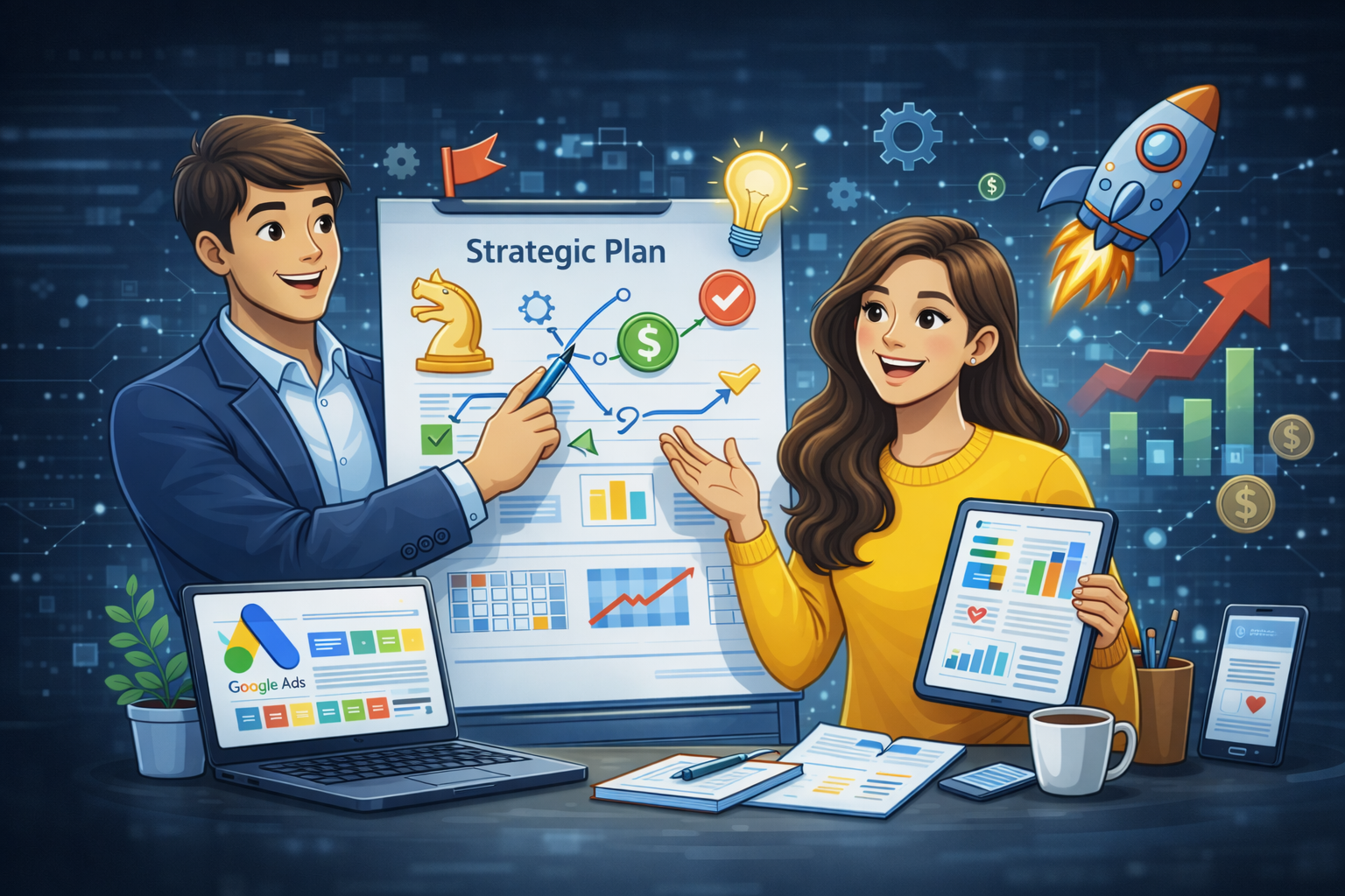 We analyze your existing Google Ads account (or competitive research if you’re starting from scratch). Identify wasted spend, missed opportunities, and quick wins.